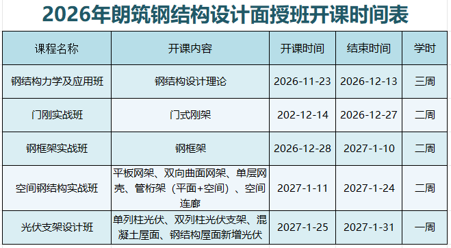 下一篇:2025年朗筑钢结构设计培训课程开课时间表